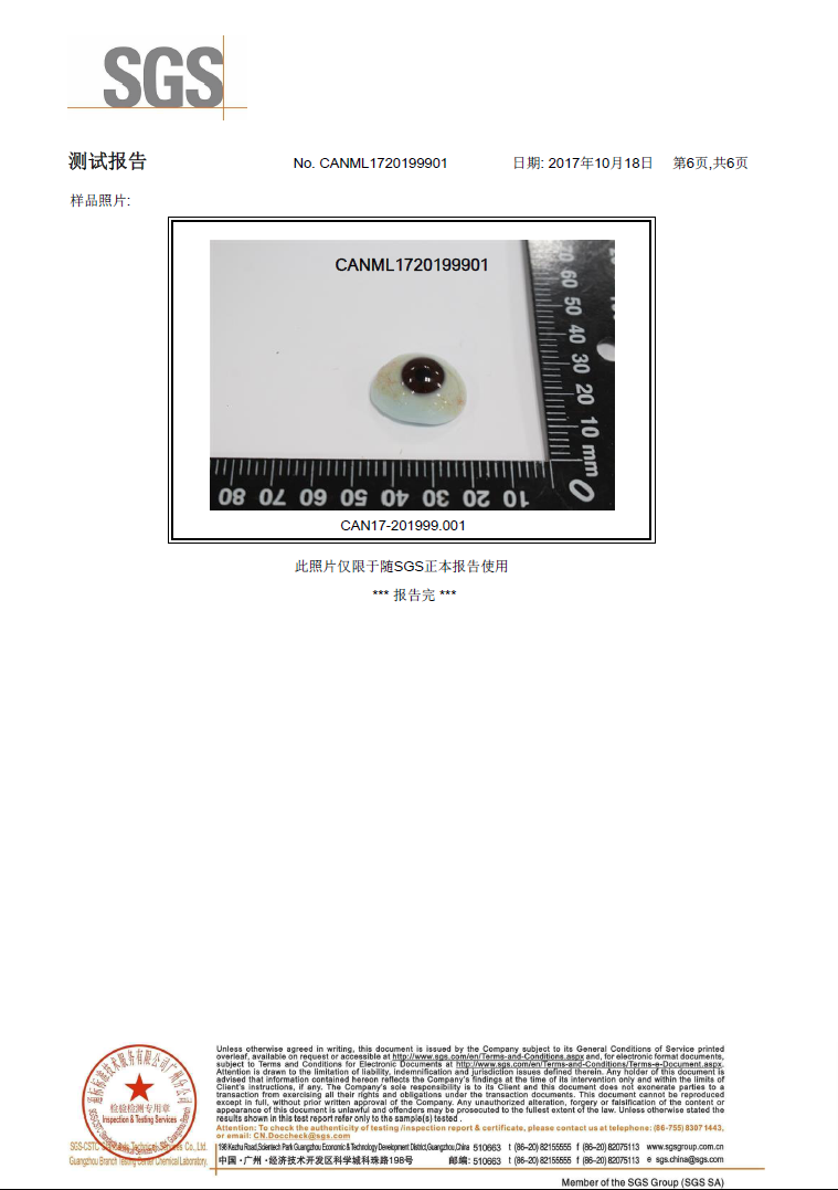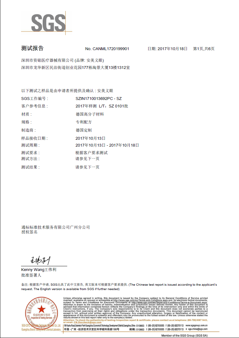安美義眼:SGS測試申請報告